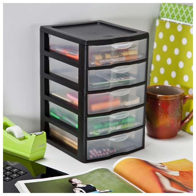 It is made from rugged plastic material that's designed for easy stacking 5 drawer organizer. It is made from rugged plastic material that's designed for easy stacking.